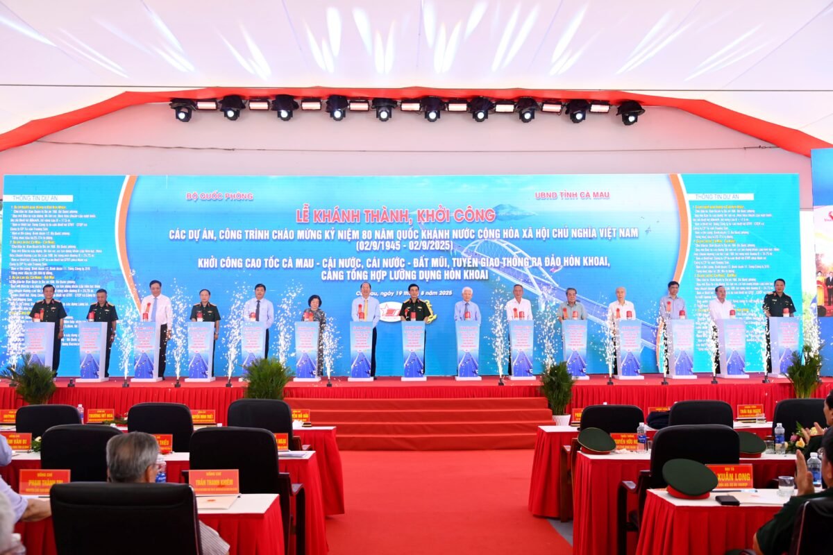 Sáng 19-8, tại xã Đất Mũi, tỉnh Cà Mau, Bộ Quốc phòng phối hợp với UBND tỉnh Cà Mau tổ chức Lễ khởi công các dự án: Tuyến cao tốc Cà Mau-Đất Mũi, tuyến giao thông kết nối từ Mũi Cà Mau ra đảo Hòn Khoai và Cảng tổng hợp lưỡng dụng Hòn Khoai. Đại